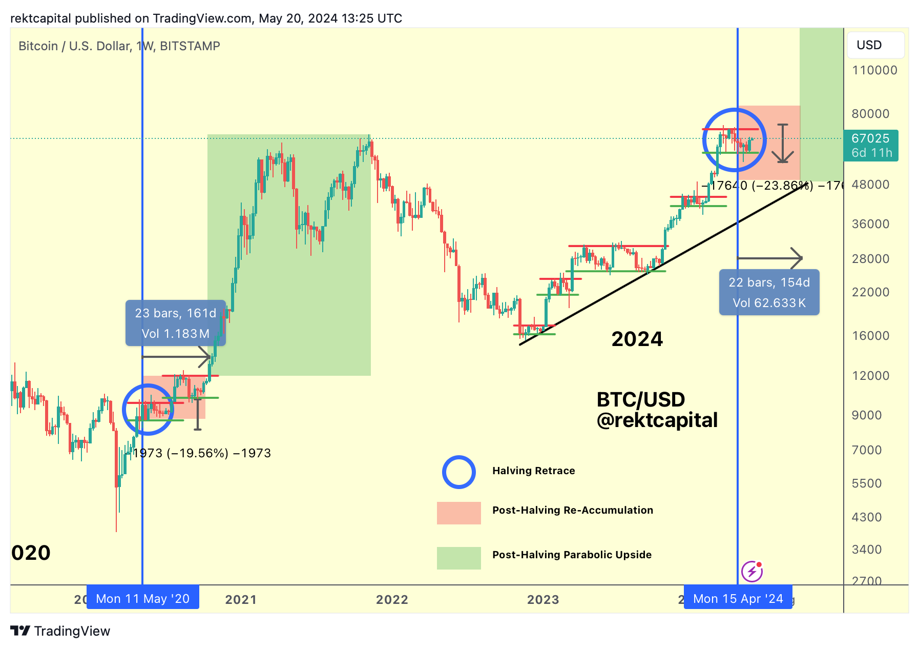 In this cycle, BTC is offering more of a lengthy Re-Accumulation Range but a standard range with price swings between two key psychological levels: $60k and $70k.