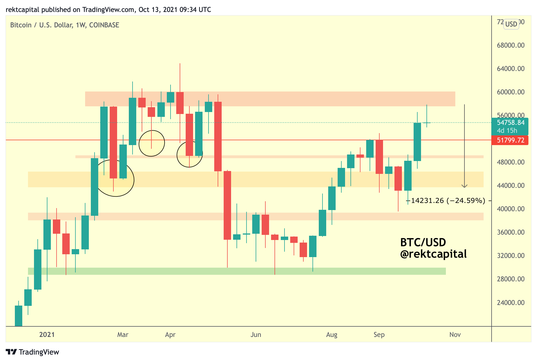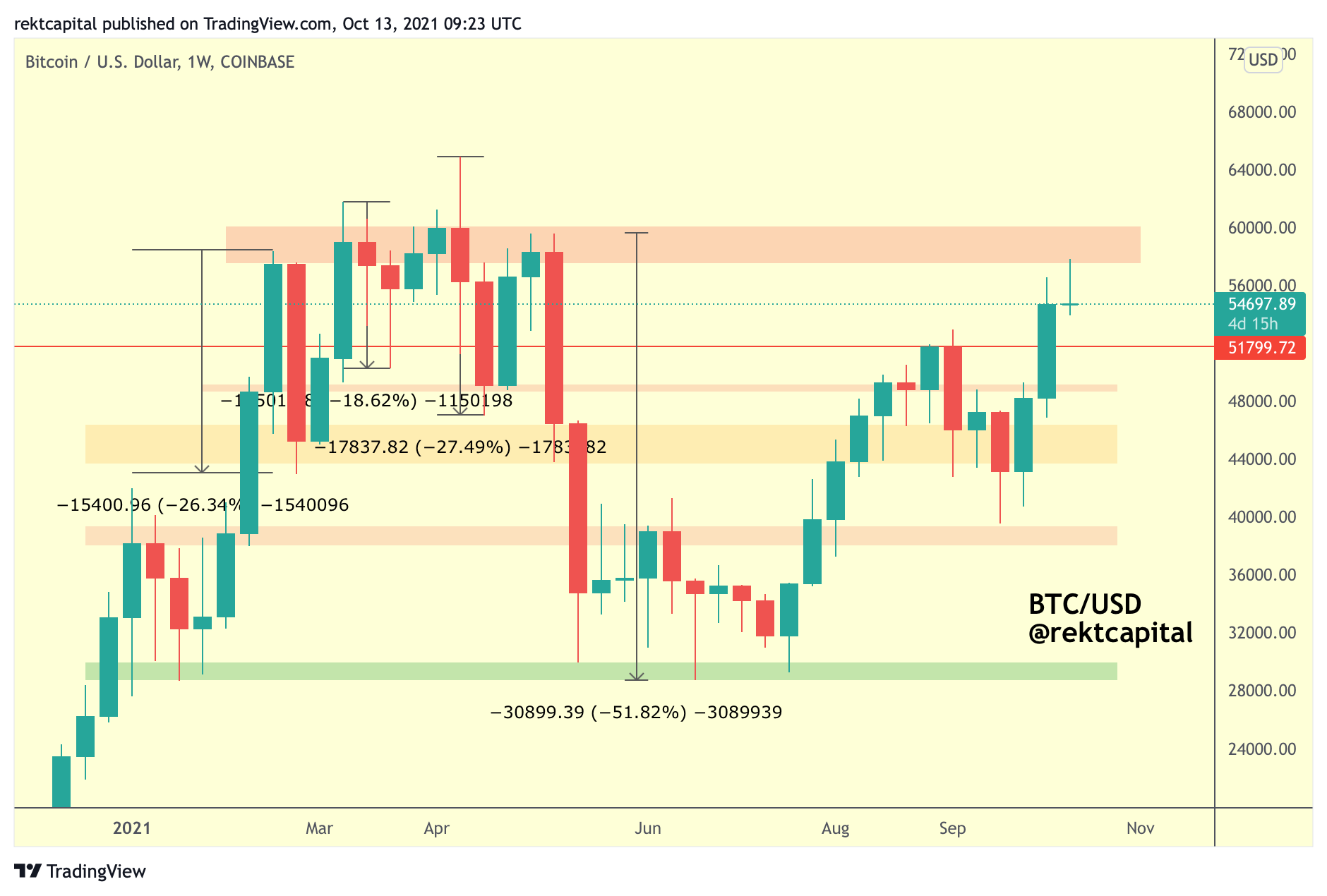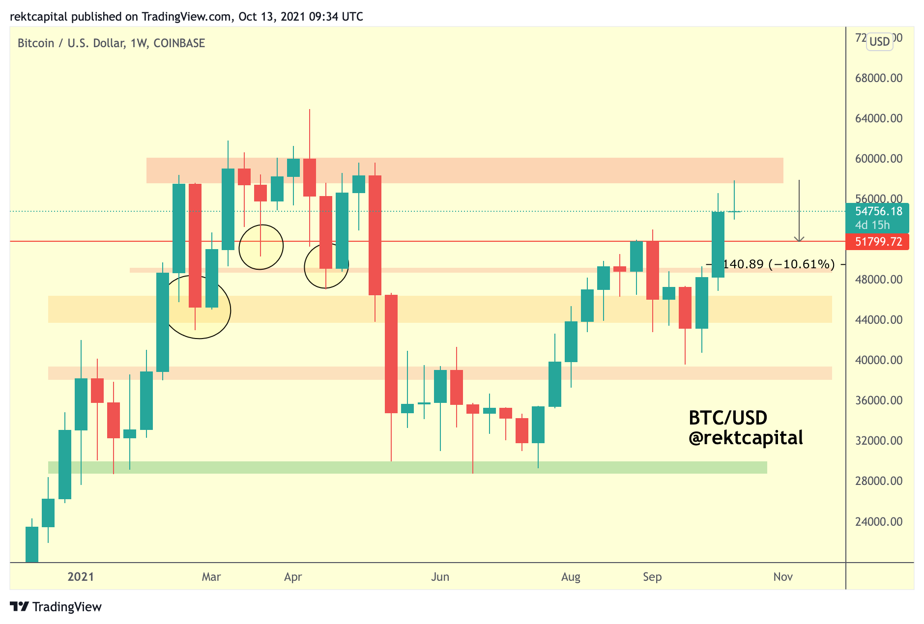 However, the -10 or -15% retracement would certainly satisfy the narrative of a weakening major resistance area, which would mean BTC would retrace to around the $49,000-$51,200 area.