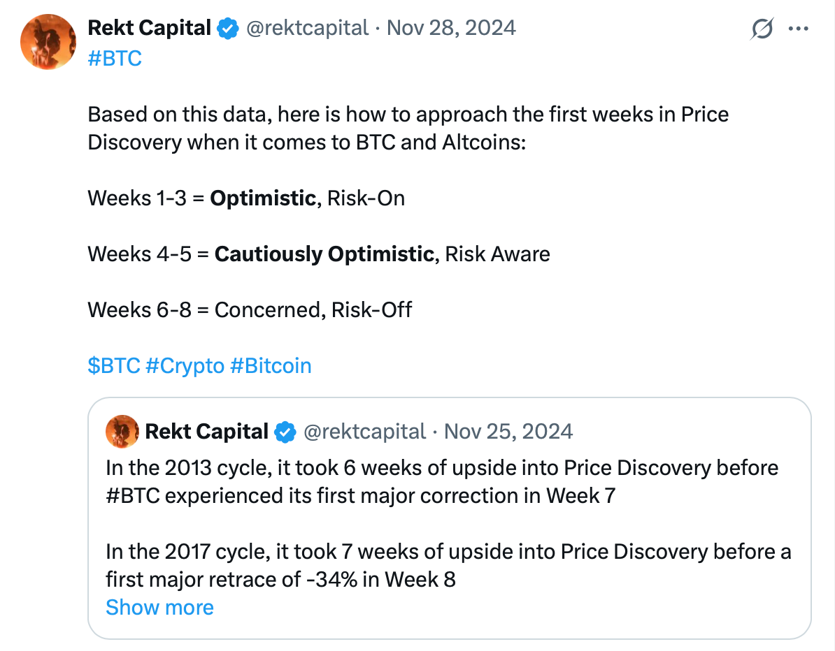Technically, Bitcoin has began Week 2 in its uptrend, whereas the first Price Discovery Uptrend lasted 7 weeks or so.