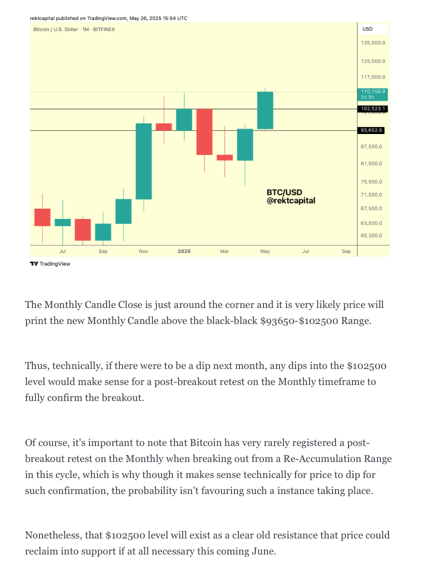 And with the upcoming Monthly Candle Close just around the corner, Bitcoin simply just needs to Close above $102464 to confirm that said level is figuring as support, and technically price should be ready for continuation to the upside.