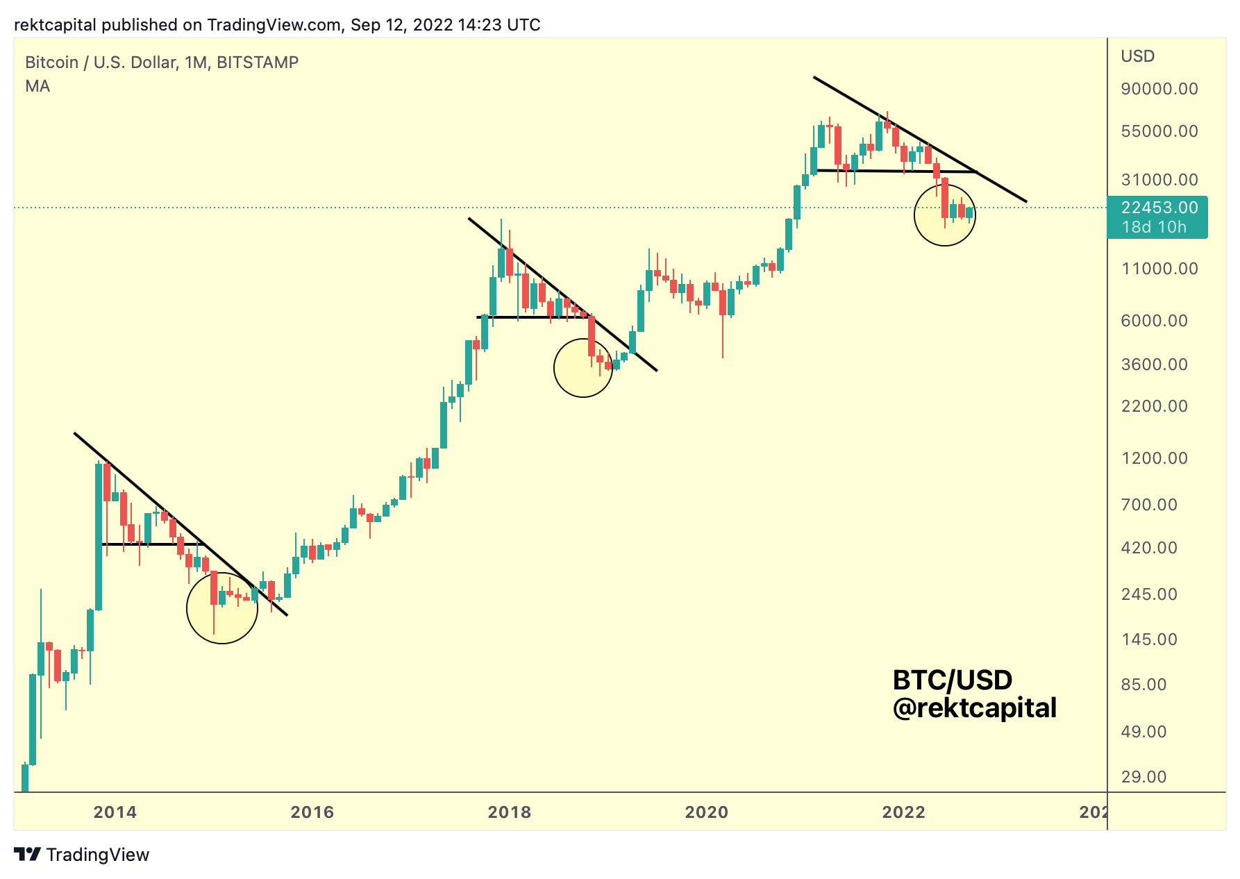 Back in June, I spoke about three historically recurring triangles in Bitcoin’s price action: