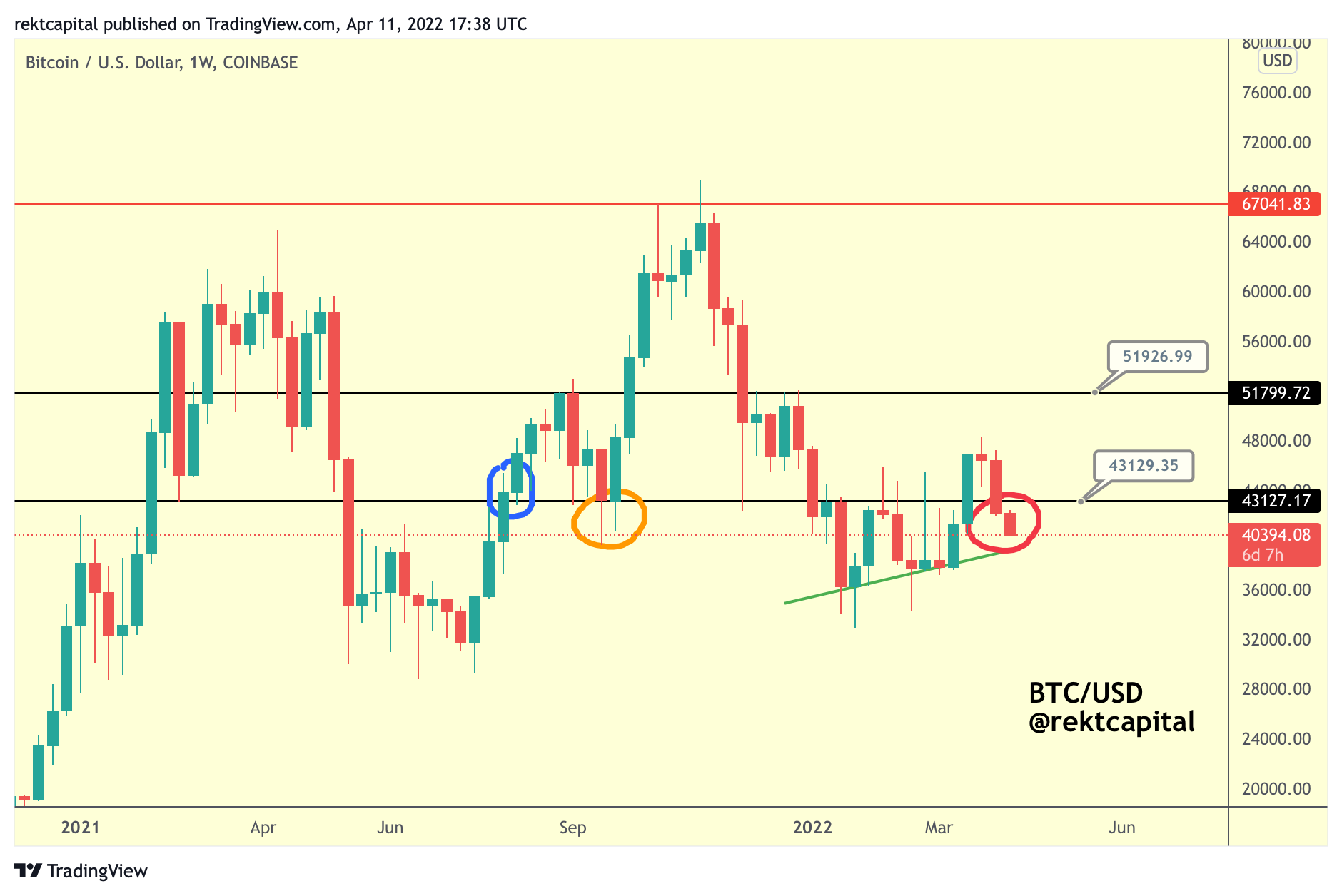 However, BTC failed to retest this previous resistance of $43100 into new support because BTC Weekly Candle Closed sub $43100.
