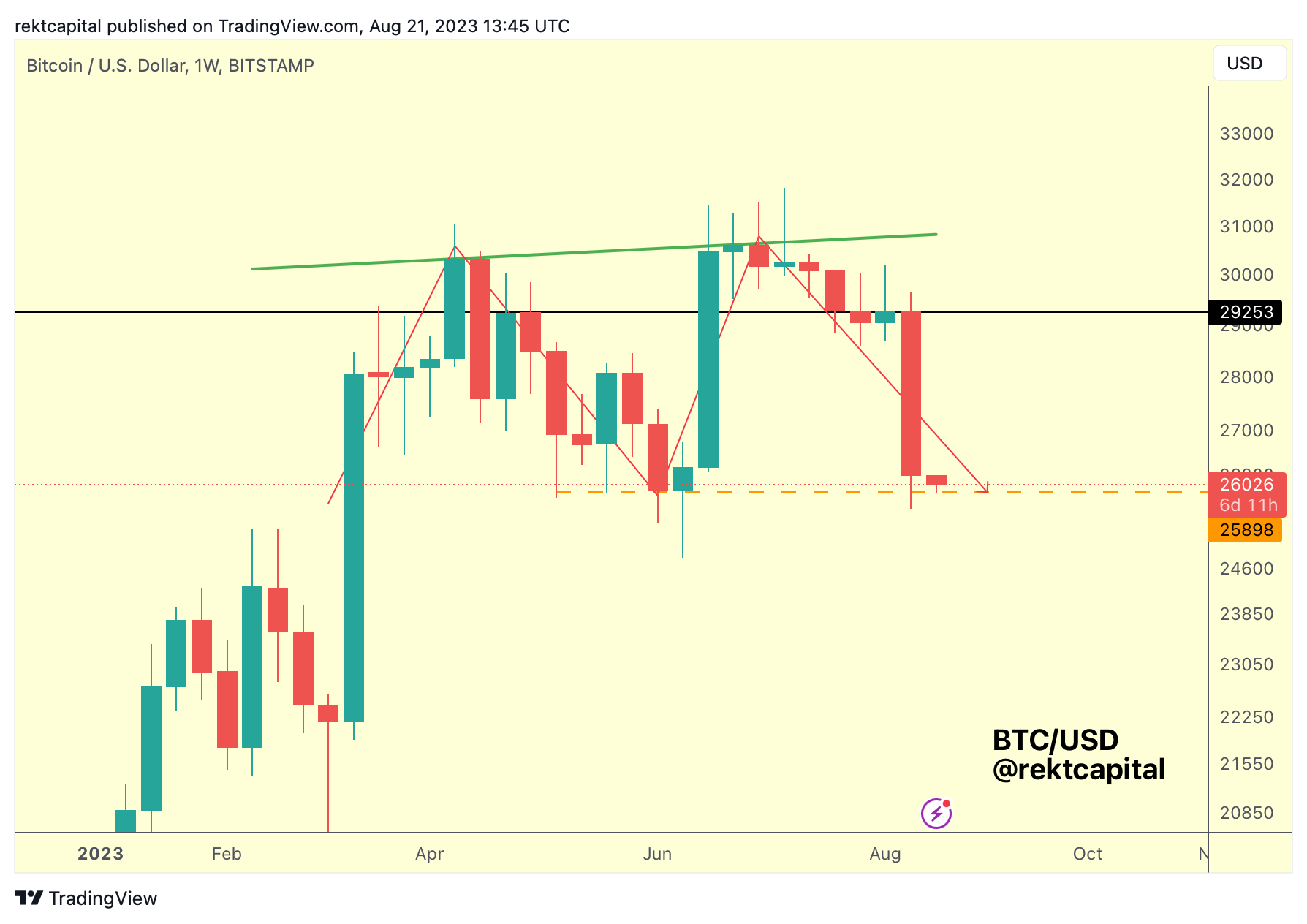 Actually, price is trying to find support at $26,000 - the very base of the Double Top.