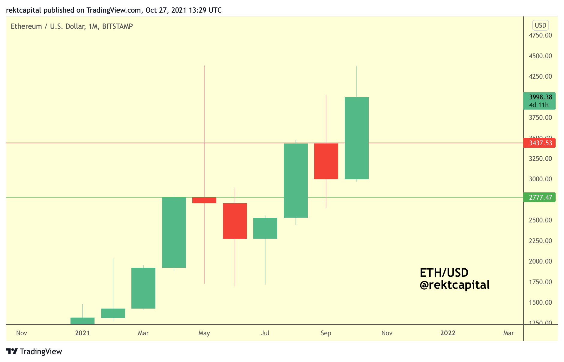 Case in point: in April 2021, ETH rejected at ~$2777 whereas in August ETH broke above this level only to retest it as support in September before moving higher.