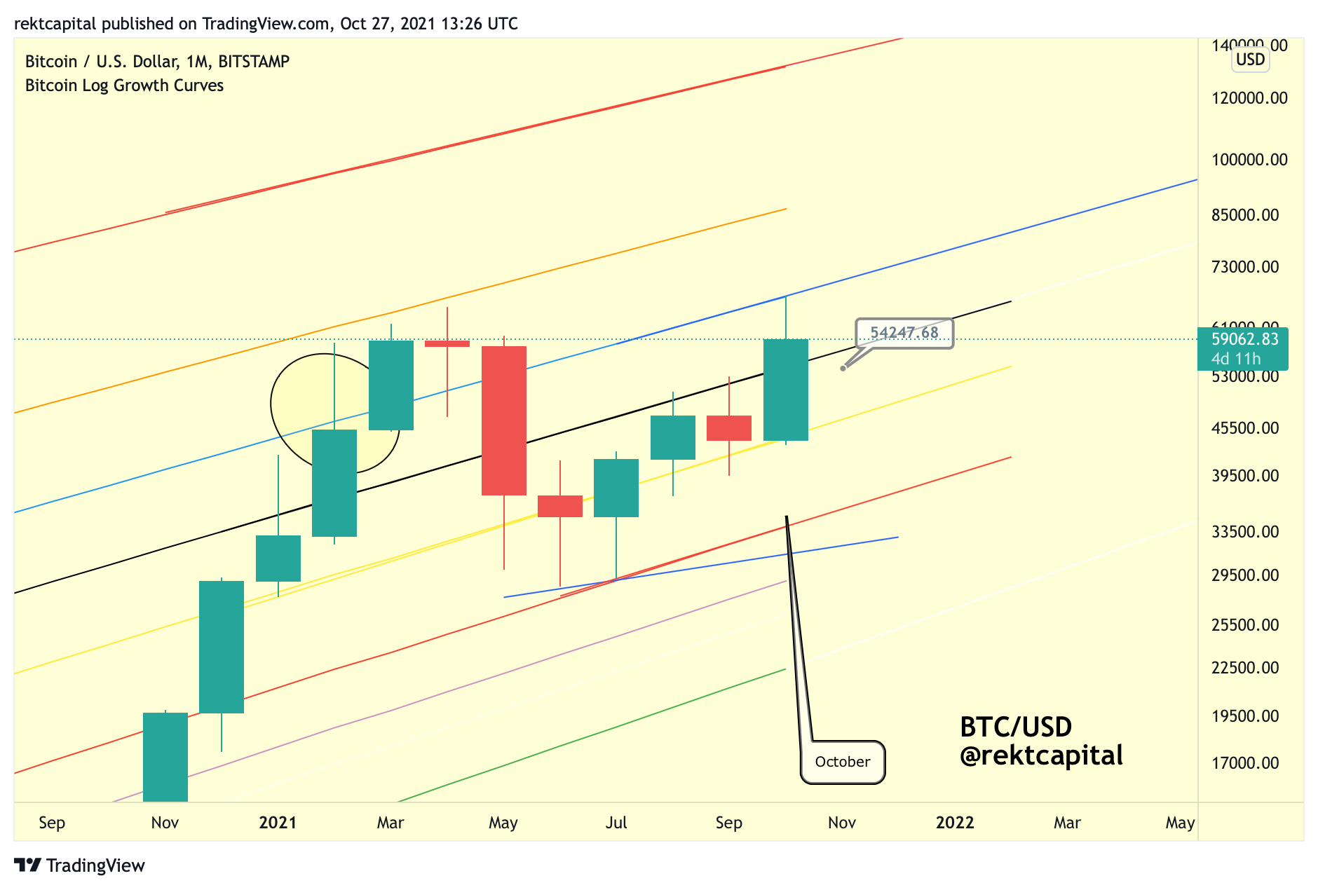 The second thing is that Bitcoin is currently setting itself up for a Monthly Close above the black 0.5 Fibonacci growth curve level, which is represented by the price point of ~$54,200: