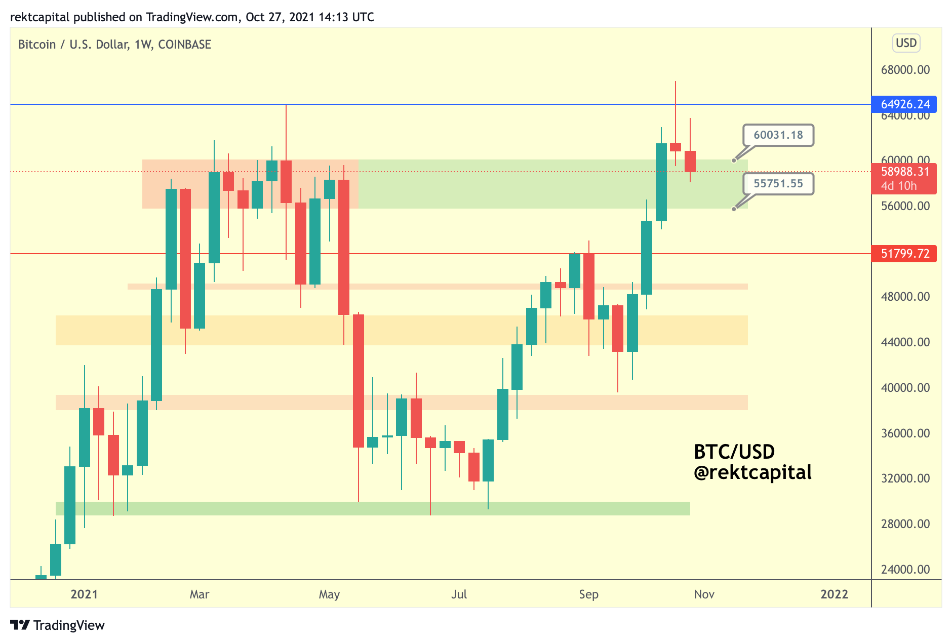 Especially since Bitcoin is currently retesting a previous area of resistance (red) in an effort to turn said region into new support (green) on the Weekly timeframe: